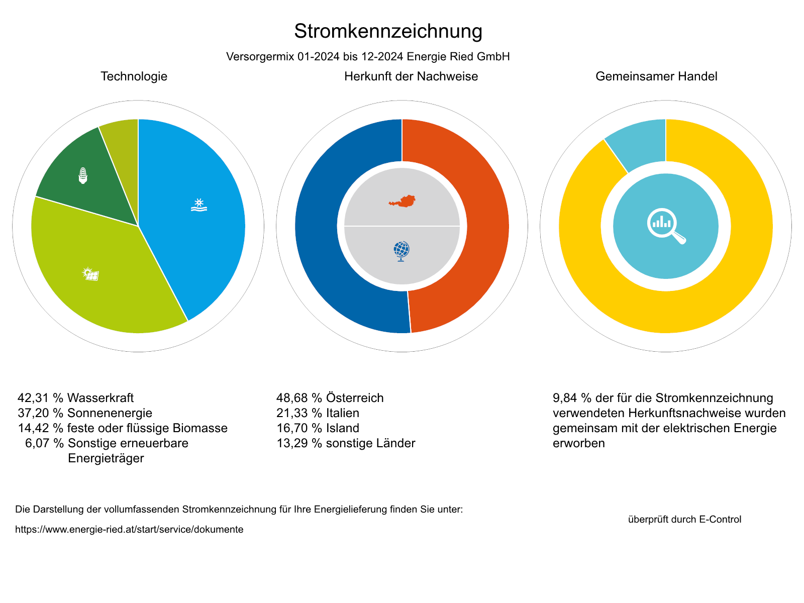 Der Versorgungsmix 01- 2024 bis 12-2024 der Energie Ried GmbH: